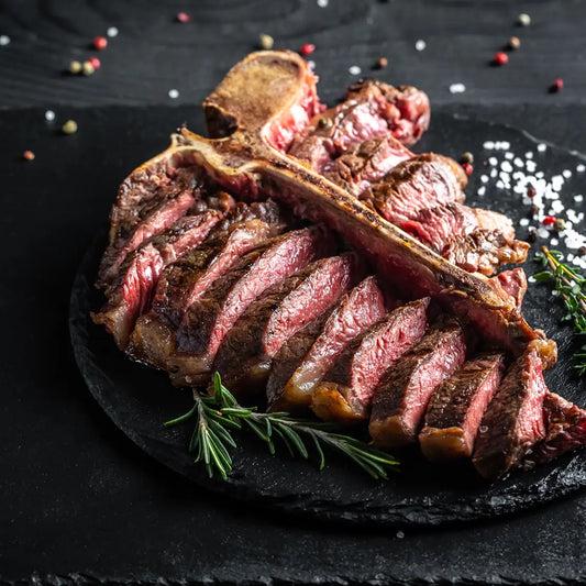 Ein echtes Porterhouse Steak kombiniert Filet & Roastbeef mit Knochen. Saftig, intensiv – perfekt für Grill oder Pfanne.
