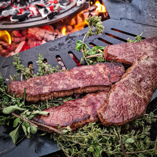 Wagyu Flank Steak ist intensiv im Geschmack, flach geschnitten und ideal für direktes Grillen. Wichtig: immer quer zur Faser schneiden!