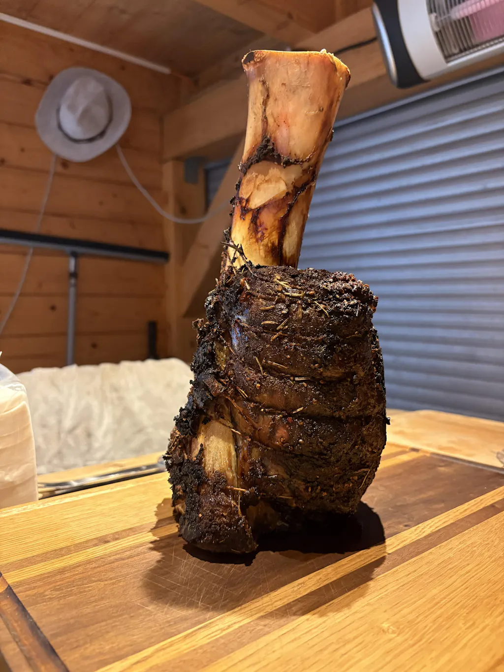• Den Beef Hammer am Knochen präsentieren – ein kulinarischer Hingucker.